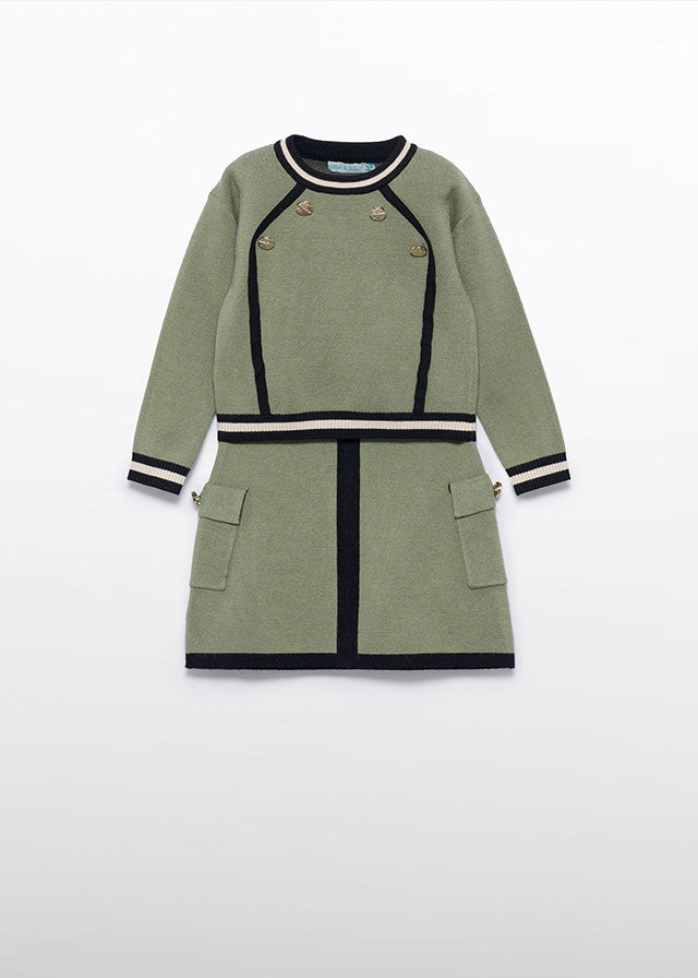 Completo bambina Abel & Lula con gonna in tricot: elegante e confortevole, ideale per cerimonie e occasioni speciali. Tessuti morbidi e dettagli raffinati per un look sofisticato e sempre impeccabile.