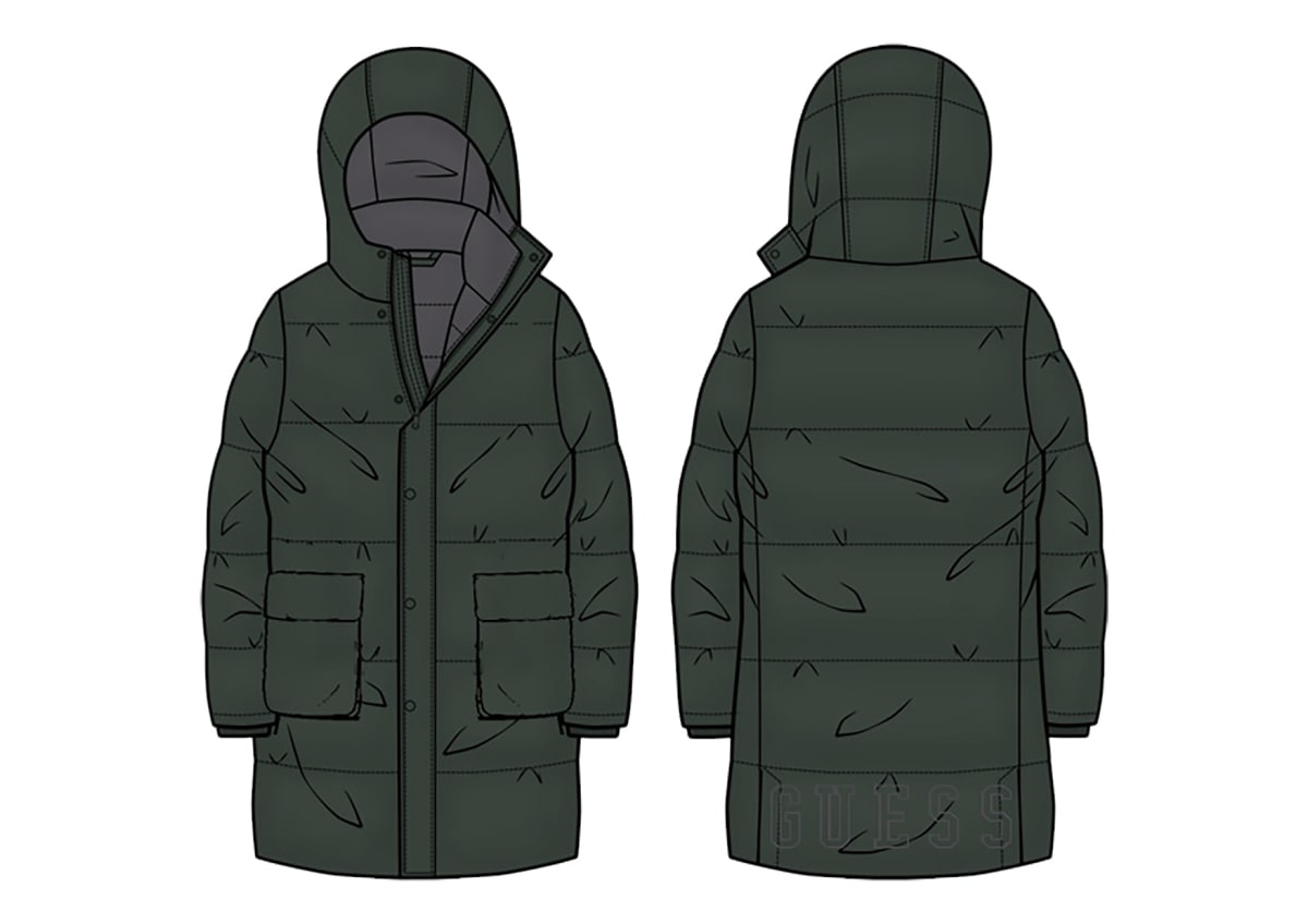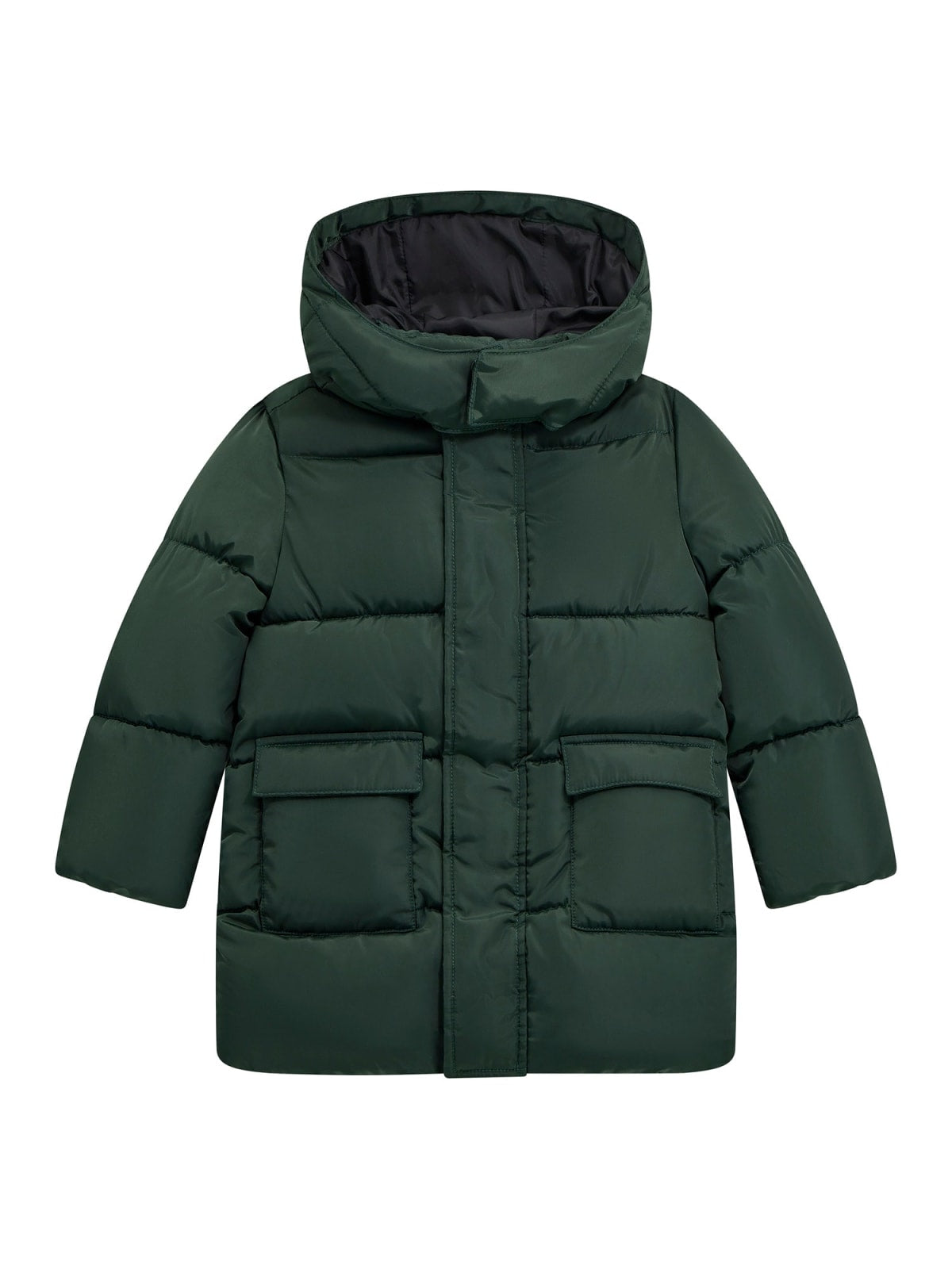 Piumino lungo imbottito con cappuccio da bambino GUESS, caldo e confortevole, ideale per proteggere dal freddo con stile.