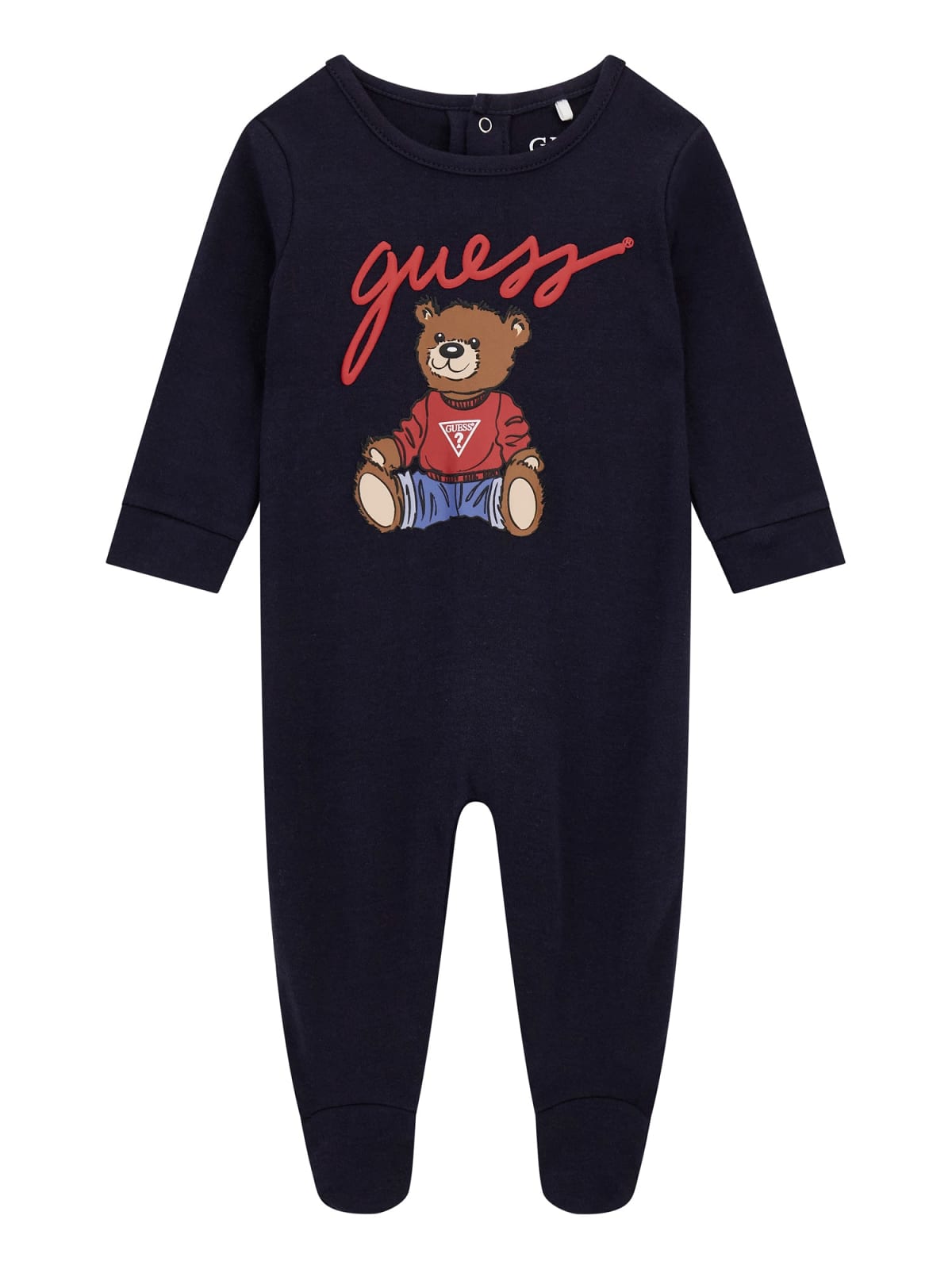 Tutina Guess da neonato in morbido interlock, pratica e confortevole, perfetta per il quotidiano con un tocco di stile