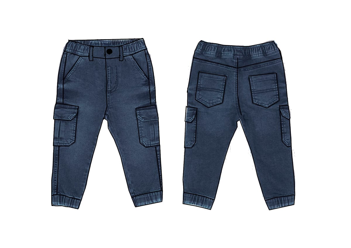 Pantaloni cargo in denim knit da bambino GUESS, con tasconi laterali e vestibilità comoda, ideali per un look casual e pratico.