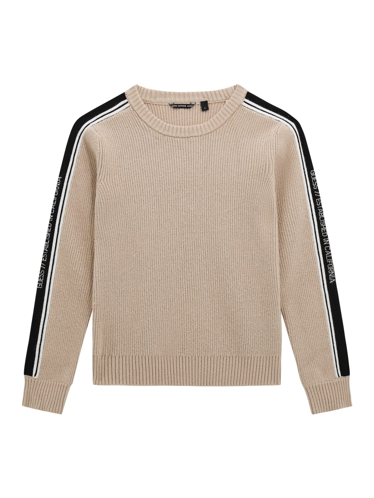 Maglione a maniche lunghe da bambino GUESS, in tessuto morbido e caldo con logo frontale, ideale per un look casual e alla moda.
