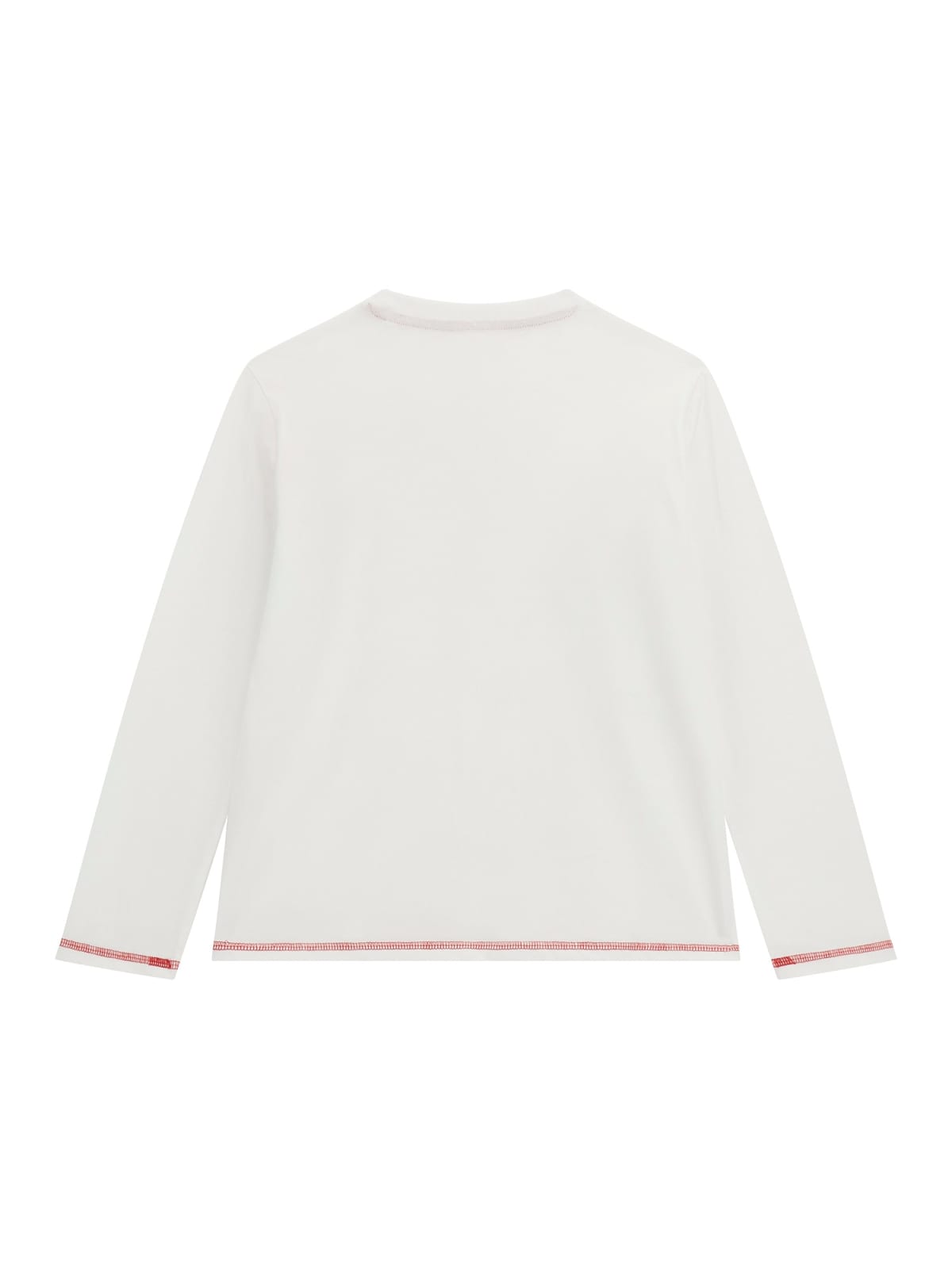 T-shirt a maniche lunghe da bambino GUESS, in morbido cotone con logo frontale, perfetta per un look casual e versatile.
