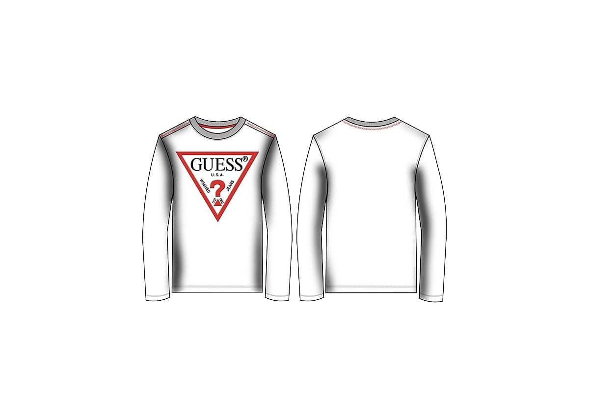 T-shirt Core a maniche lunghe da bambino GUESS, in morbido cotone con logo frontale, perfetta per un look casual e versatile.