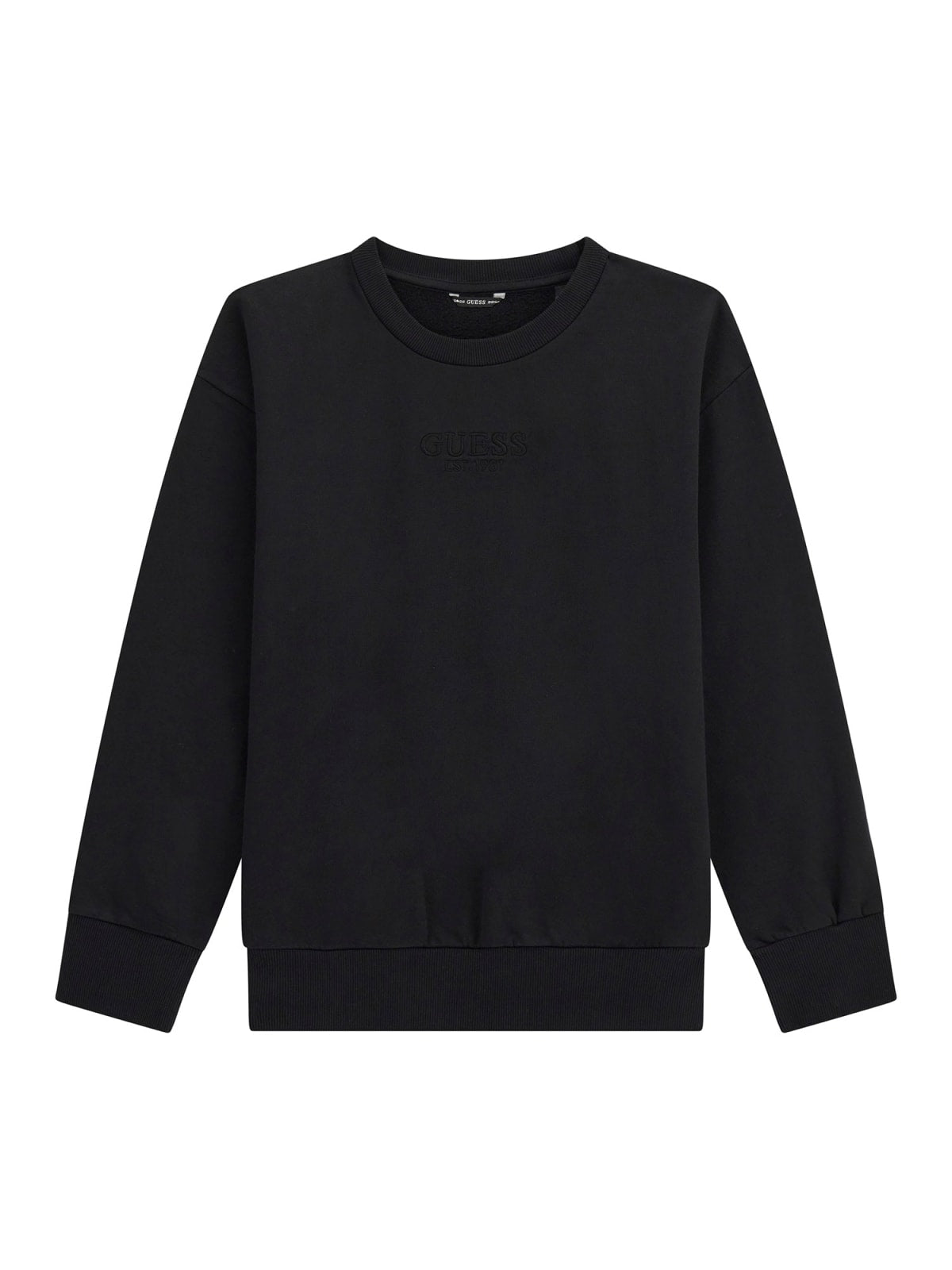 Top active oversize a maniche lunghe da bambino GUESS, in tessuto tecnico leggero con logo frontale, ideale per un look sportivo e di tendenza.