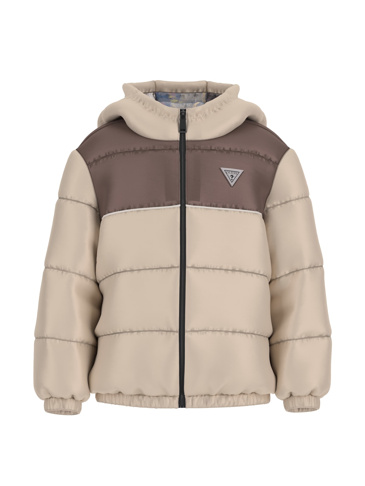 Giacca imbottita con cappuccio e zip da bambino GUESS, calda e confortevole, ideale per affrontare le giornate fredde con stile.