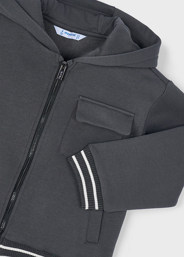 Felpa in cotone elasticizzato a costine con cappuccio integrato. Morbida, calda e ideale per i look quotidiani dei più piccoli.