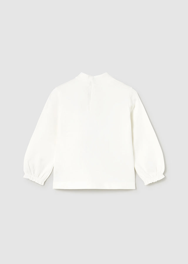Lupetto a manica lunga firmato Mayoral, arricchito da una dolce grafica frontale che dona un tocco giocoso al look della tua bambina. Realizzato in morbido cotone elasticizzato, è ideale per le giornate più fresche e perfetto da indossare da solo o sotto felpe e giacchine.