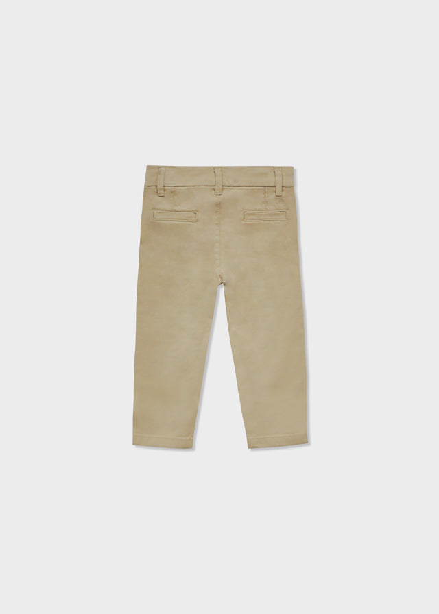 Pantalone chino basico firmato Mayoral, realizzato in tessuto morbido e leggermente elasticizzato per garantire comfort e libertà di movimento. Il design classico con tasche laterali e chiusura comoda lo rende perfetto per ogni occasione, dai look più casual a quelli più eleganti.