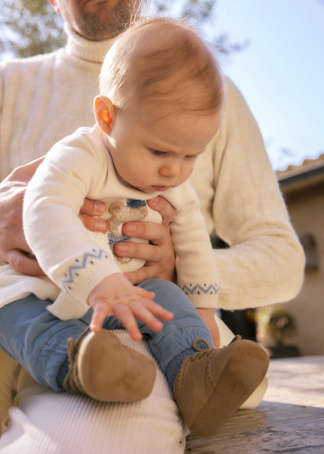 Un set pratico, caldo e raffinato pensato per i primi mesi del tuo bimbo. Il completo Mayoral include una maglia a manica lunga abbinata a un comodo pantalone lungo, ideale per accompagnare il neonato con stile e comfort durante tutta la giornata.Realizzato in tessuti morbidi e traspiranti, questo completo è perfetto sia per l'uso quotidiano che per le uscite speciali.